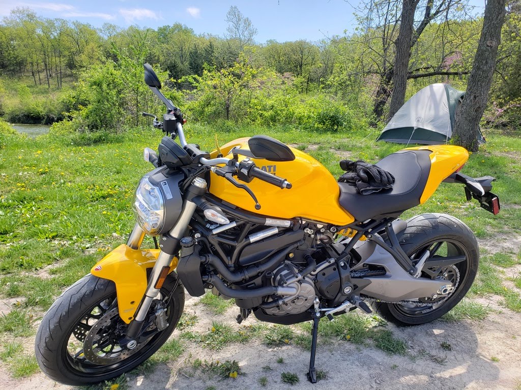 Much later than usual, but I got the Ducati Monster out yesterday and rode out to the lake to visit the Boy Scout Troop and join them for lunch. Good day riding, if quite windy. About 75 miles round trip.